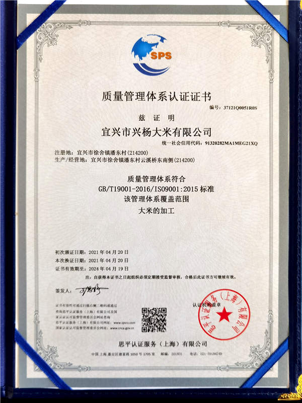 宜興市興楊大米有限公司坐落于江蘇宜興市徐舍鎮(zhèn),是一家集水稻種植、收購(gòu)、加工、銷售與一體的江蘇無錫市農(nóng)業(yè)產(chǎn)業(yè)化龍頭企業(yè)。本公司多年被評(píng)為“無錫市放心糧油示范加工企業(yè)”,“江蘇省糧食經(jīng)營(yíng)者守法誠(chéng)信A級(jí)企業(yè)”等。2020年12月獲得“無錫好米”金獎(jiǎng)。注冊(cè)資本1200萬(wàn)元,已具備年產(chǎn)5萬(wàn)噸大米的加工能力。